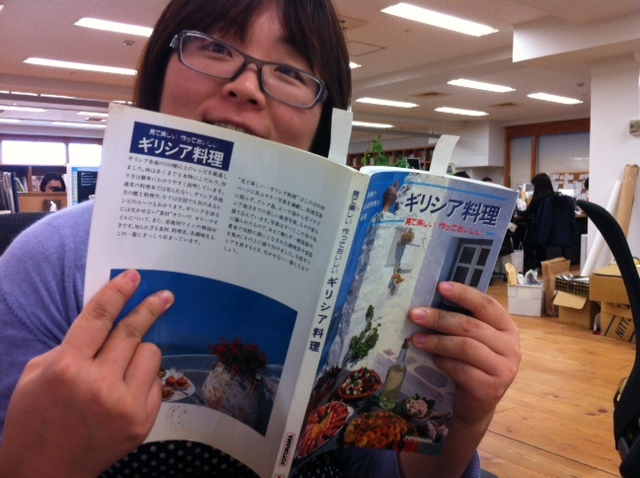 腹が減りすぎてギリシャの料理本を凝視してますね。 わかるよ、もうちょっとだよ。 |