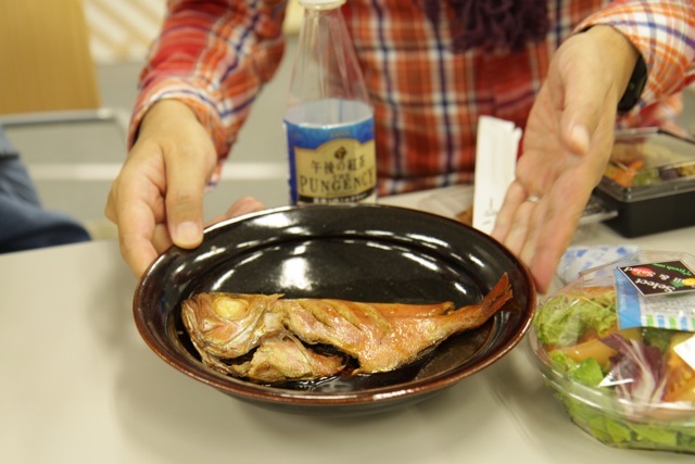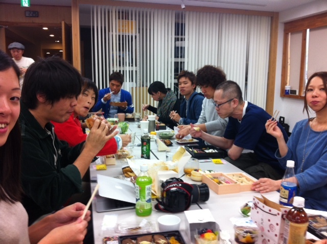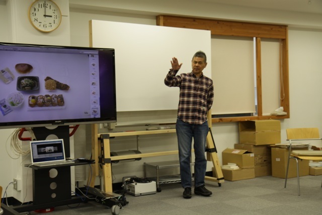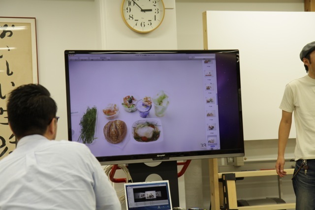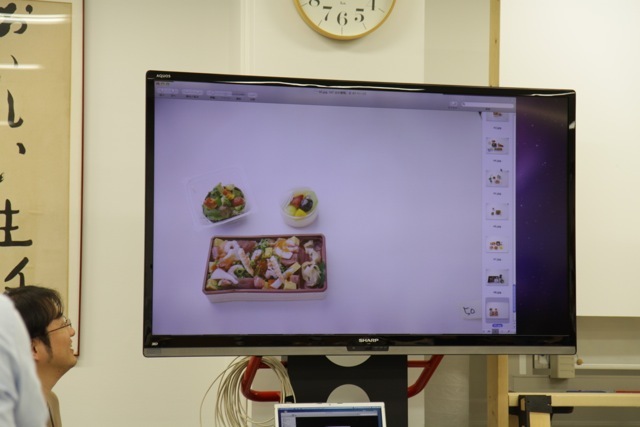 撮影した、みんなのお弁当を テレビに写して、 なんだかんだとしゃべっております。