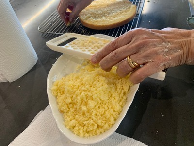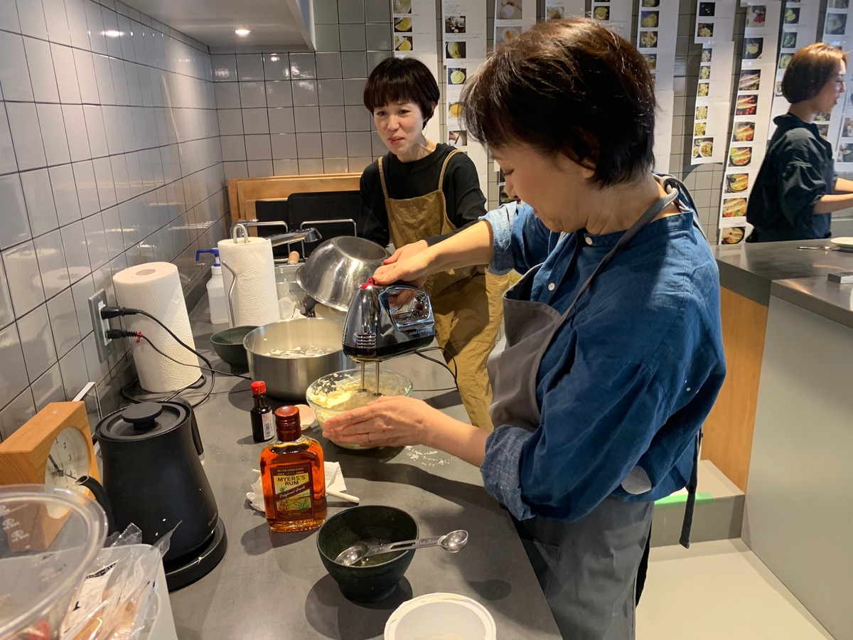 ホークで軽くつぶしてかたちを決めます。