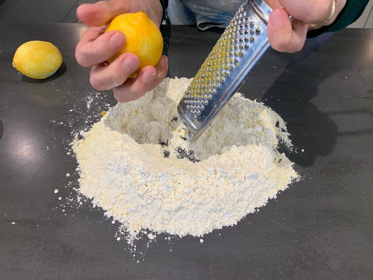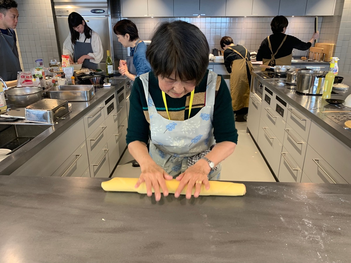 こねて、棒状にして、