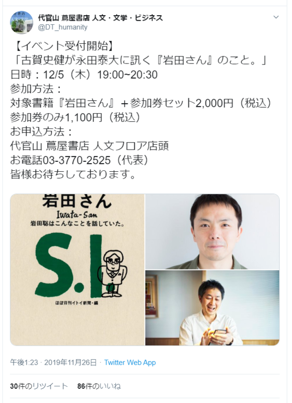 代官山蔦屋書店さんのツイッター