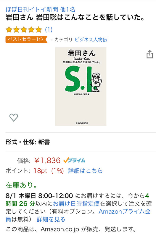 Amazonでの在庫が切れていましたが、