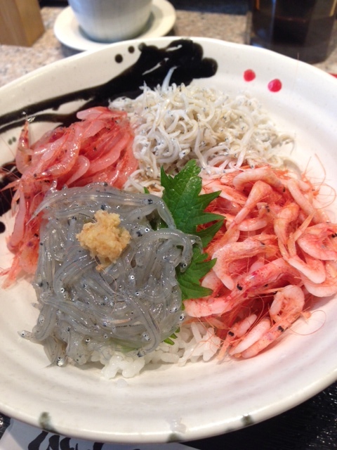 釜揚げしらすと釜揚げ桜海老の4色丼。」