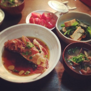ガシラ(カサゴ)の煮付けとアサリの味噌汁、