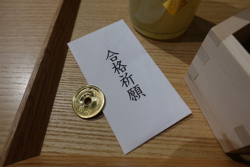 5角形(五角→合格?)の升に入ったおこしのセットです。