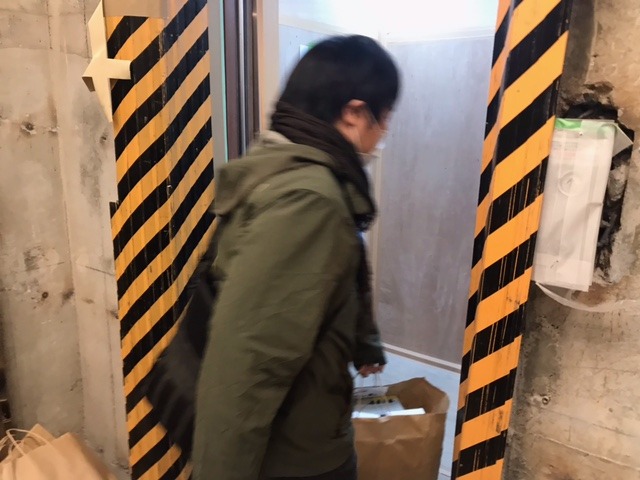 フグを運びながらなので、