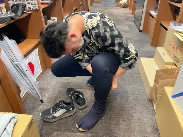 山下さんが外したメガネも預かる