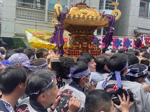 直前でスタンバイするお神輿。