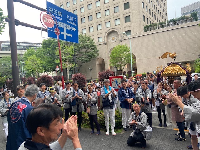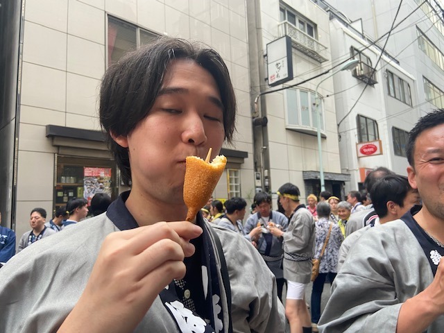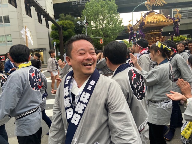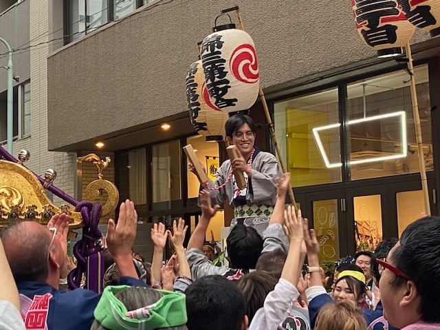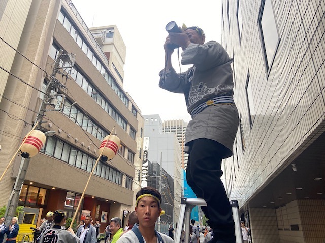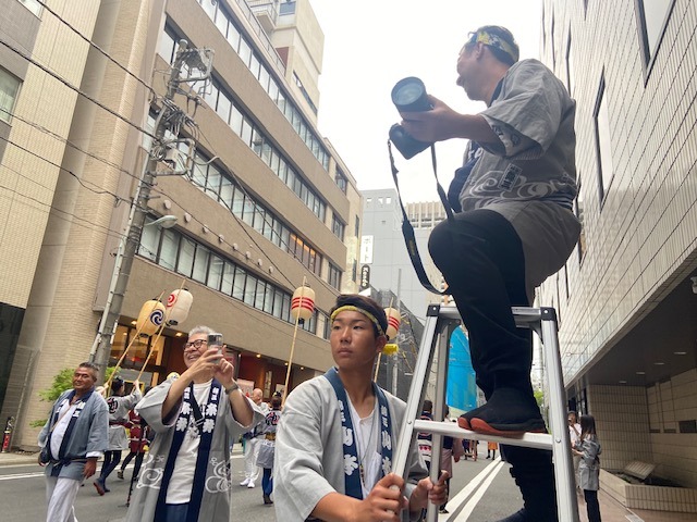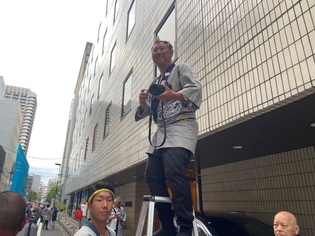 ゆかいの池田さんが脚立の上で待ち構えています。