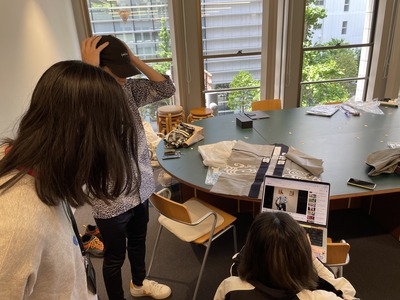 みんなに結び方を指導しています。