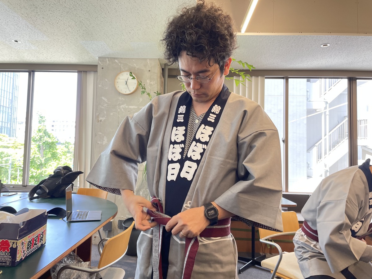 帯の結び方などを練習しているところです。