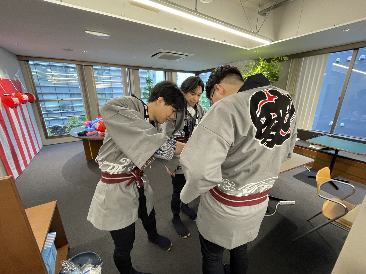 担ぐみなさんが続々と着替えを完了しています。