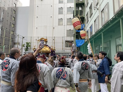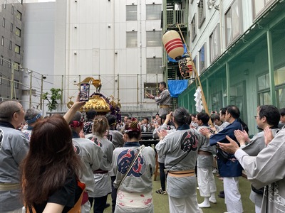 「拍子木の人のギリギリまでお神輿が近寄って、