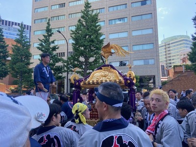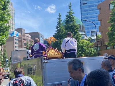 トラックに御神輿を乗せて、