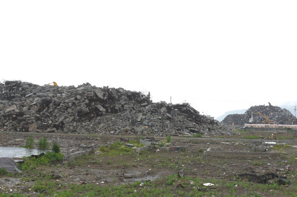 一方で、津波で粉々になった建物や家具は、