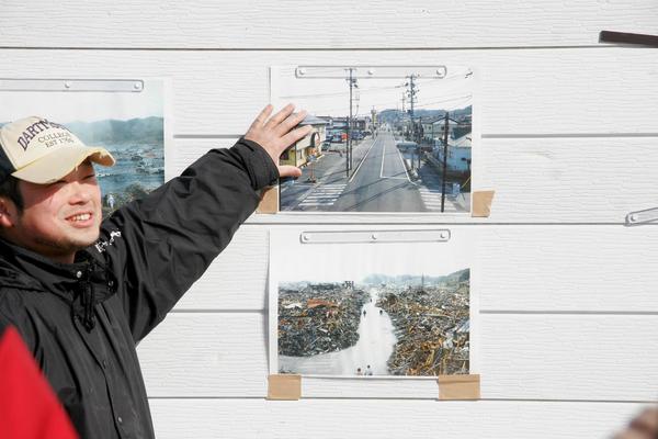 被災した街を案内する、