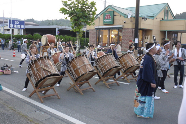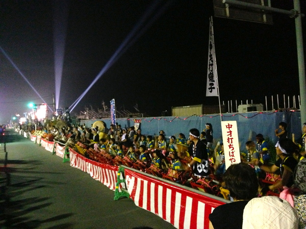 ずらりと並んで太鼓をうつ姿は圧巻で、