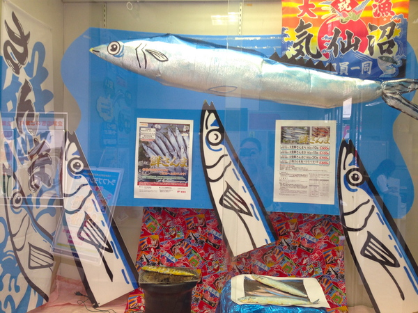 郵便局にて、巨大なサンマを見かけました。