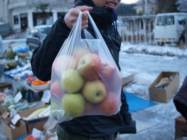 袋いっぱいのりんごは、なんと1000円。