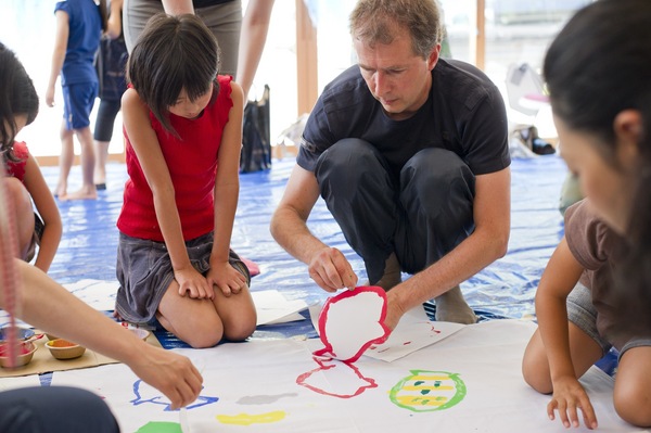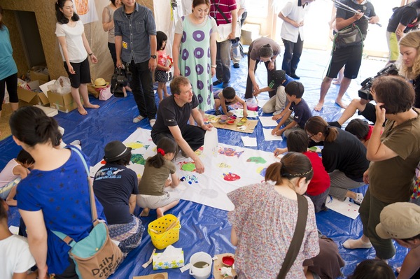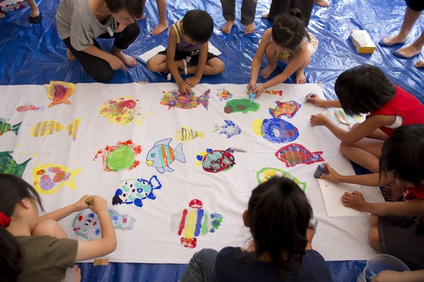 子どもたちから歓声と拍手が!旗作りワークショップは、