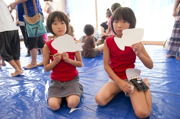 さすが気仙沼!というやりとりも見られましたさらに、厚紙に色を塗り始めると、子どもたちから