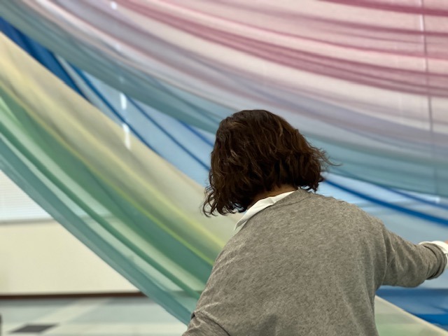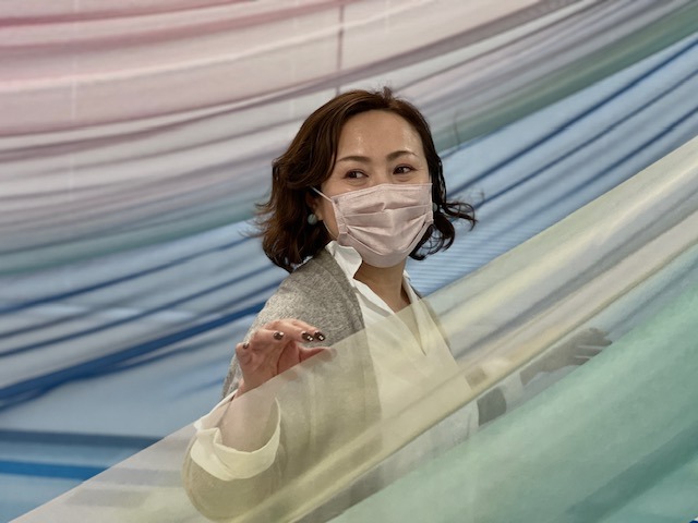 オープニングのふわふわな布を