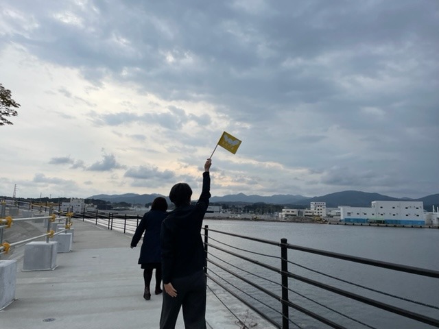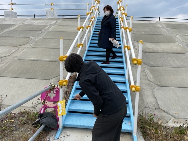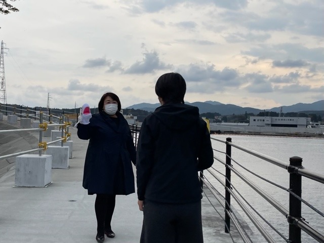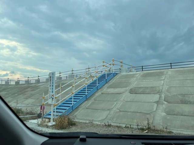 防潮堤の上。