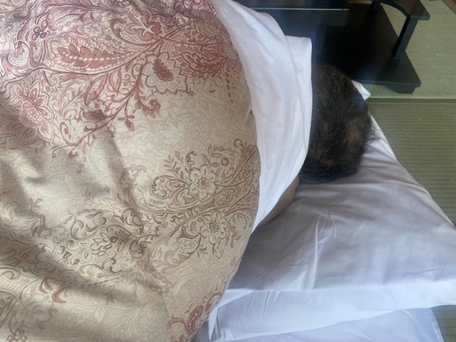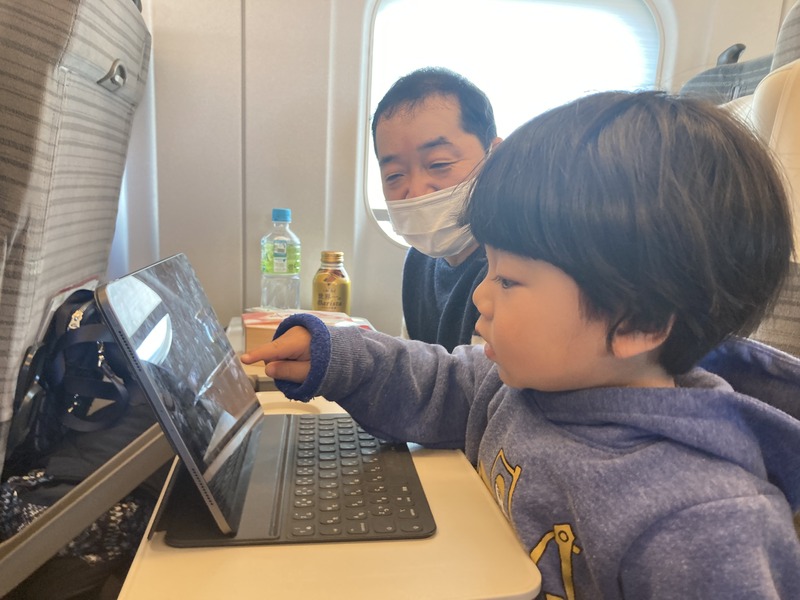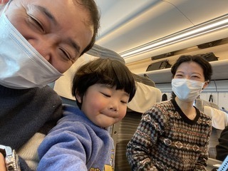 新幹線の窓から差し込む日差しも