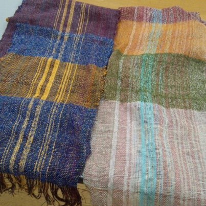 今回は、さをり織り。 講師の先生が、機織り機に セットして下さった縦糸に、 好きな色を好きなように、 組み合わせて織って行きます。