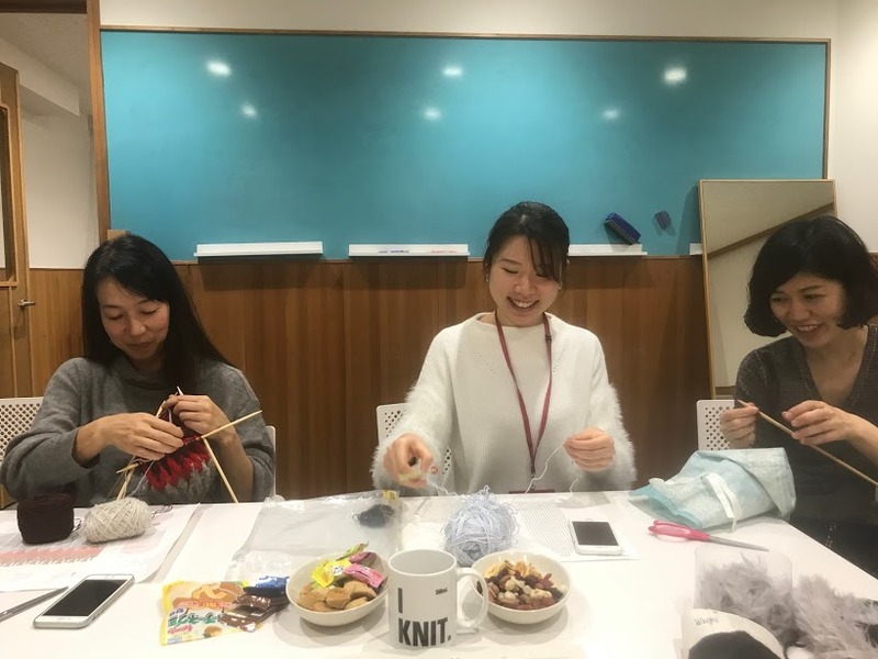 喫茶店でゆったりとコーヒーを飲みながら編む