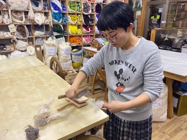 羊毛をすく