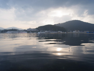 2枚目は、宿の目の前に広がる海でみた夕焼けです。