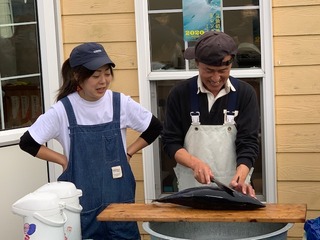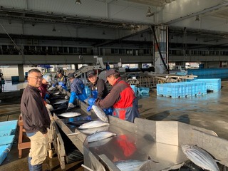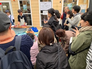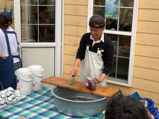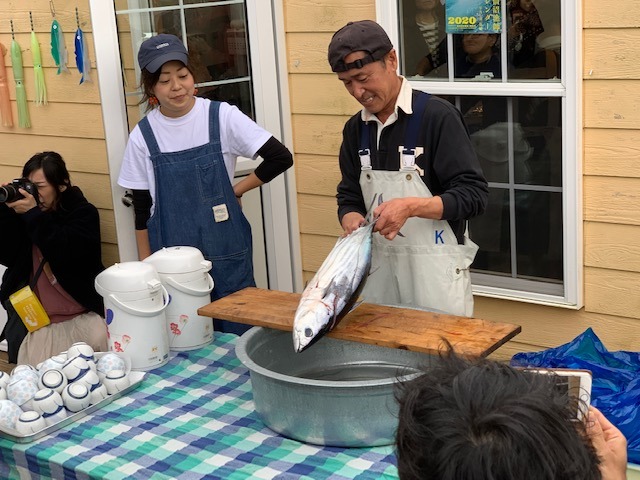 着くなり、カツオの解体が!