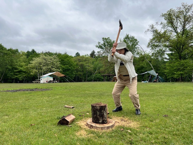 廣瀬の薪割りショーがはじまった。