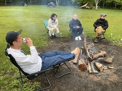 焚き火のそばで