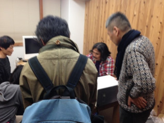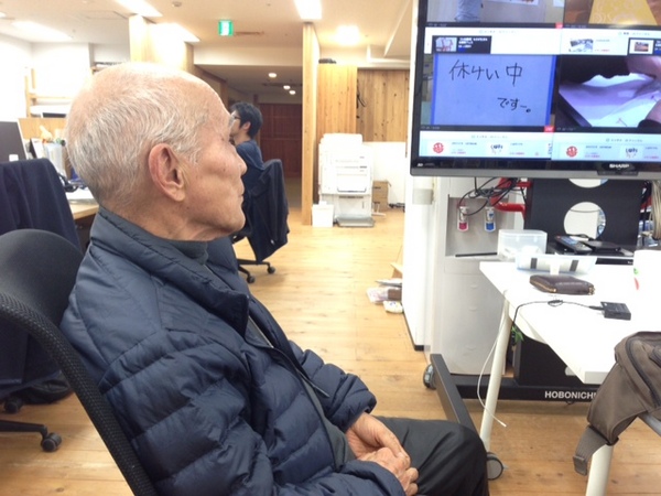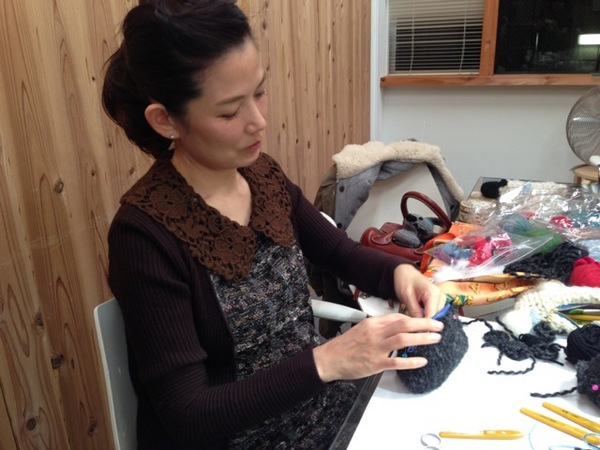 会議室Bで 11時からずーーーっと 編んでいらっしゃるタカモリさんです。
