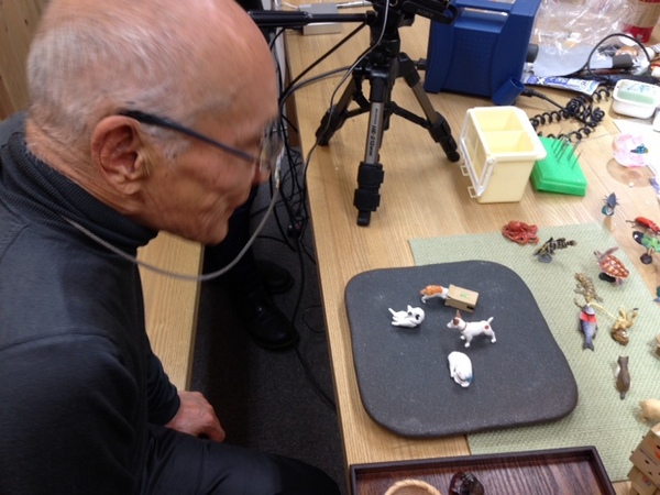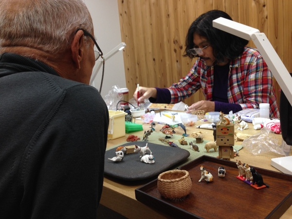現在、猫のフィギュアが 彩色される様子を とっくりと見物中です。