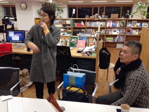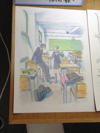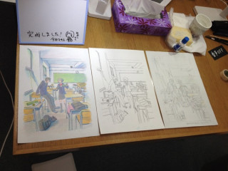 「会議室C 」で 「みかこさん」の最終巻の表紙絵を 描いていた今日マチ子さん。