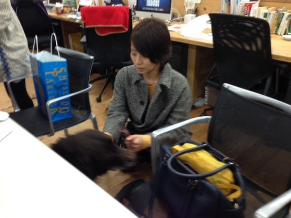谷川俊太郎さんが飛び入りし、 たのしく、わたわたしているところに なんと、石田ゆり子さんが 愛犬、はなちゃんといっしょに いらっしゃいました。