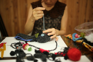 ねこのめがねケースが、 みるみる、 かたちになっていきます。 |