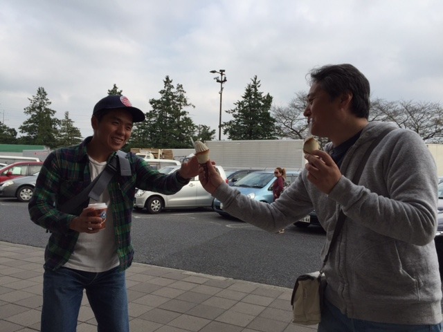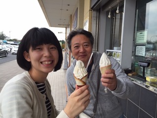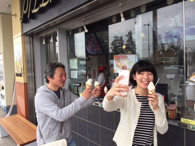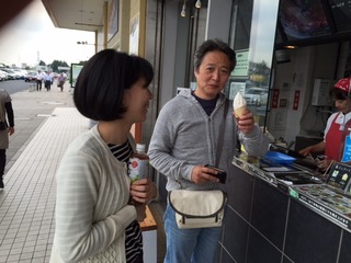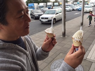 外のお店でソフトクリームを