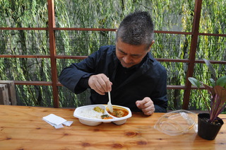 カレーを食べながら