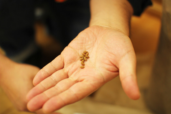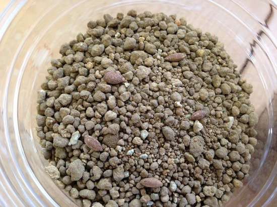 表面から6〜7ミリ(種もみ二つ分)くらいの深さに種を押し込んで、軽く土をかぶせます。
