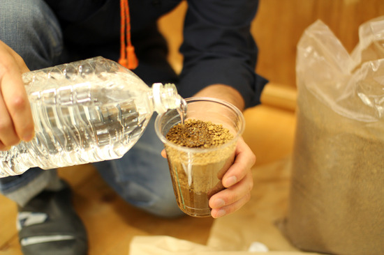 コップの土が、上から下まで湿るくらい水をあげたら、