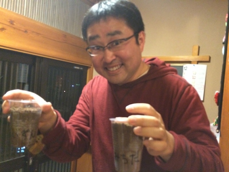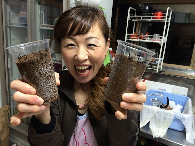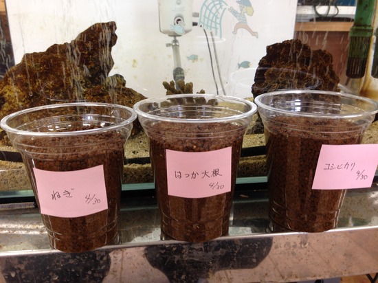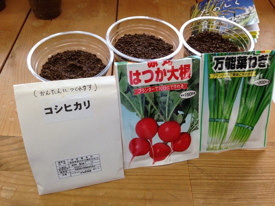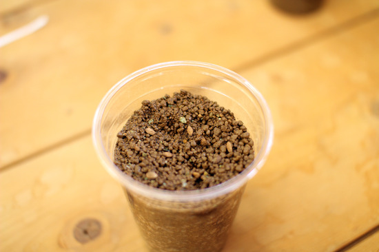 ここのところ雨で寒かったりしますが、種まきはコップで