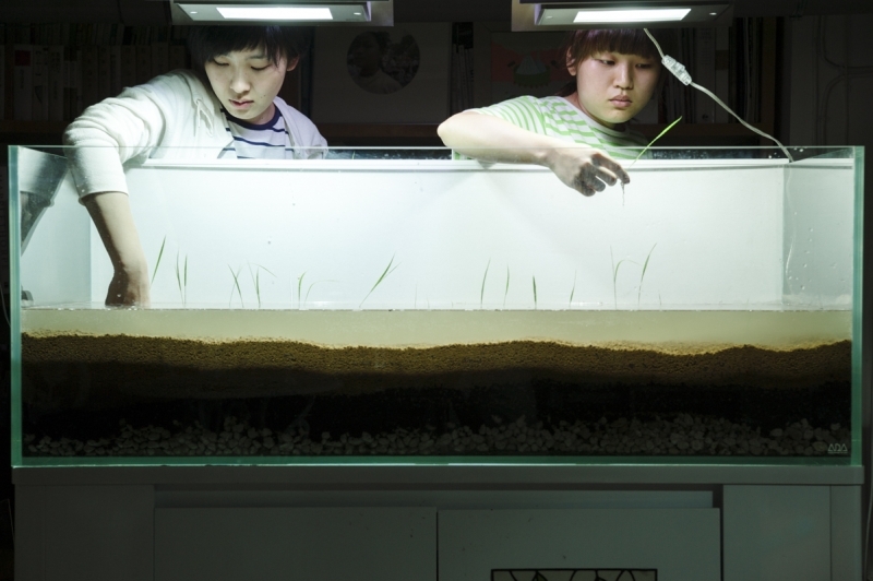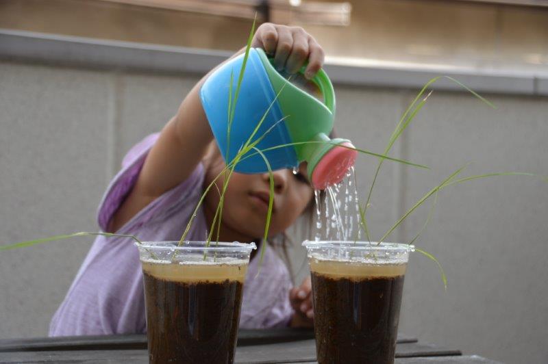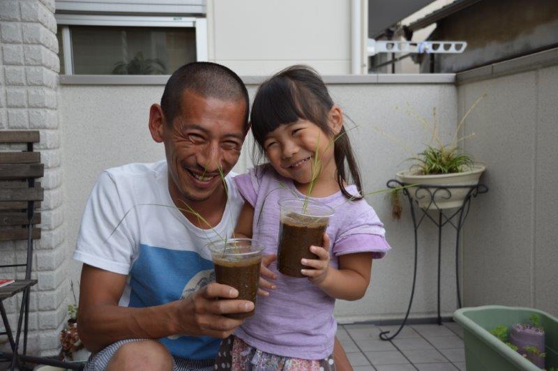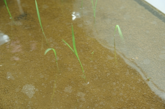 ちいさな田んぼのタネまき、「芽が出てきました」の報告、