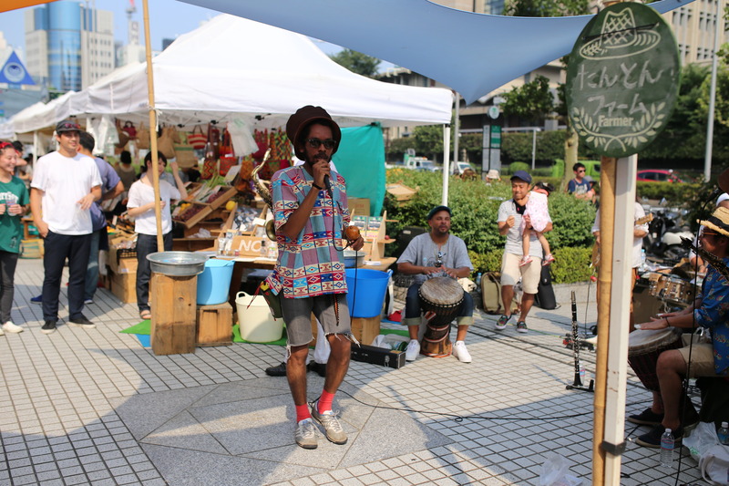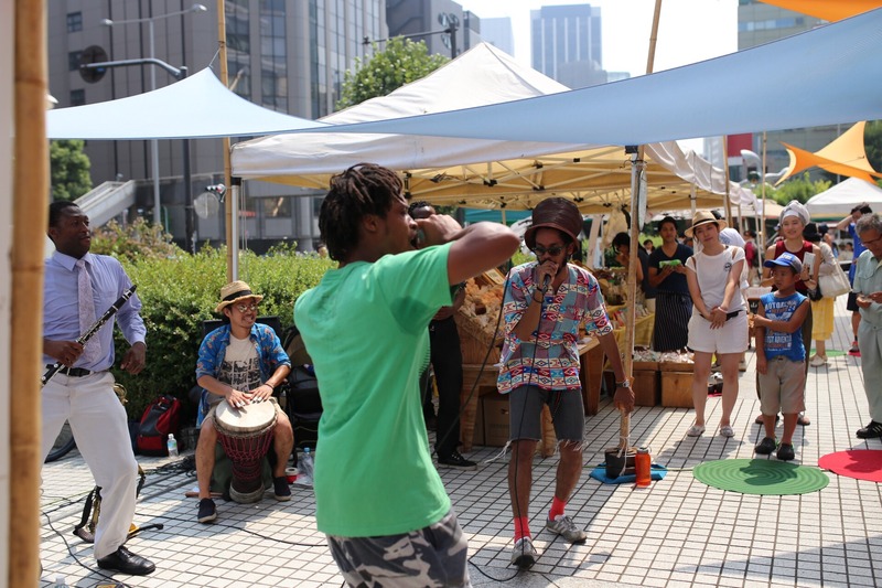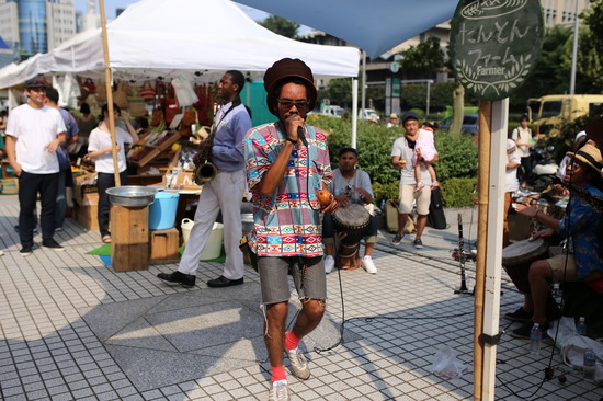 マーケット内では陽気な人たちのライブパフォーマンスもはじまっていました。あついけど、みんな、楽しんでます。