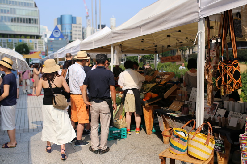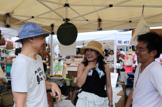 先ほどまで、TOBICHI2の海街diary展にいたはずの弊社社長がいつのまにかマーケットへ来ていました。白いとうもろこしを片手に藤田さんたちと、談笑しております。