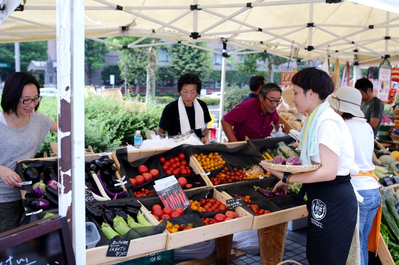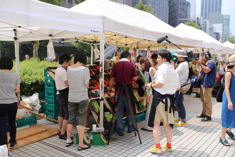 ファーマーズマケットじたいにたくさんのお客さんがきていますが藤田さんたちの「郡山ブランド野菜」のブースはひときわ、盛況のようです。試食して「うまい」となるのプラス、置いてある野菜が鮮やかで見ていて楽しいのもひとつの理由なのかなーと思ったり。