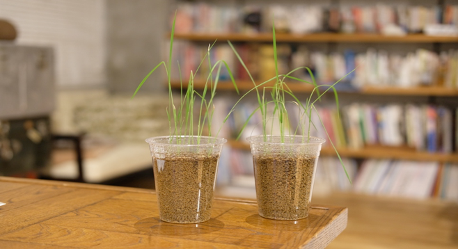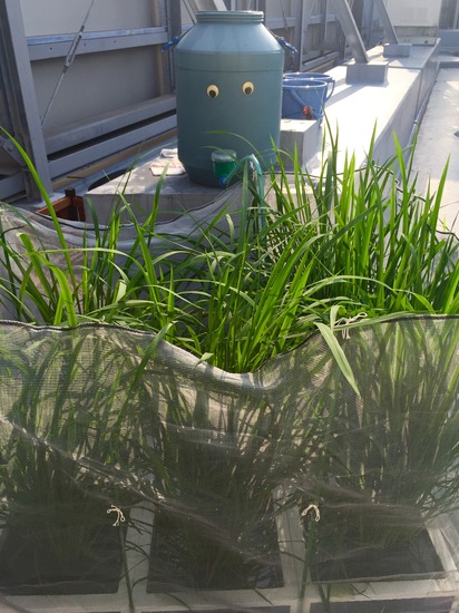 ほぼ日の屋上にある田んぼキットの稲も